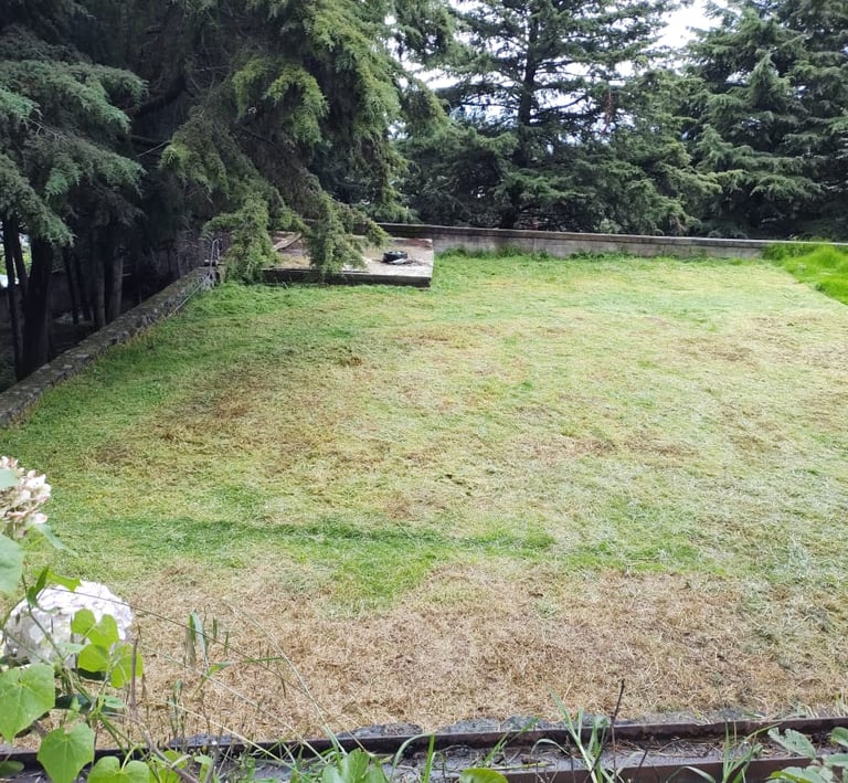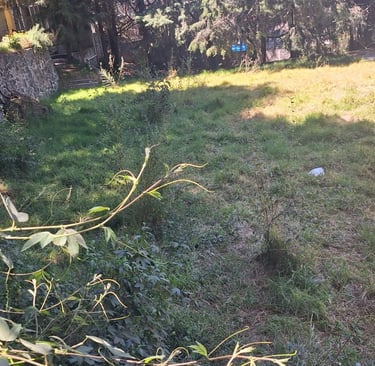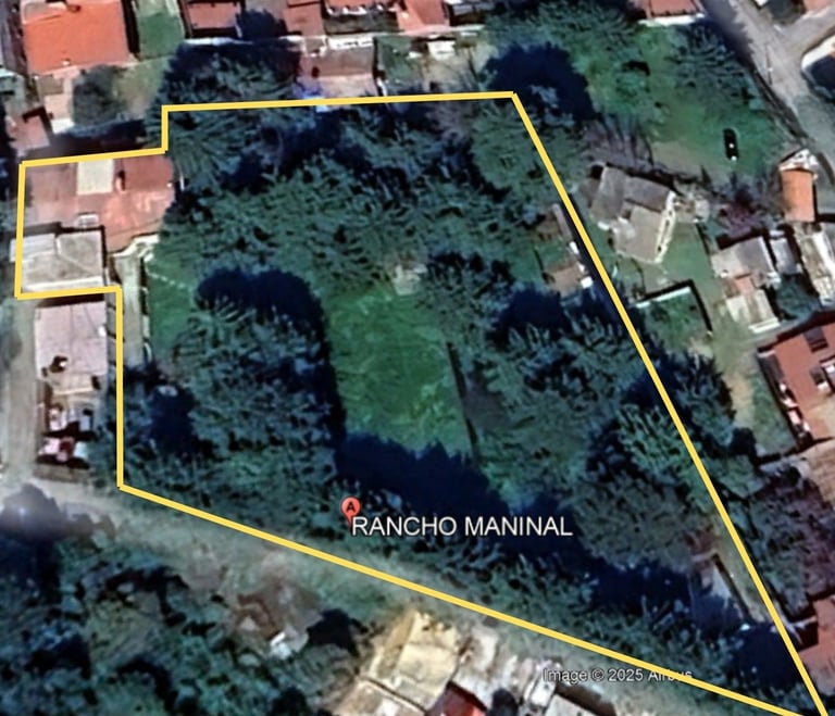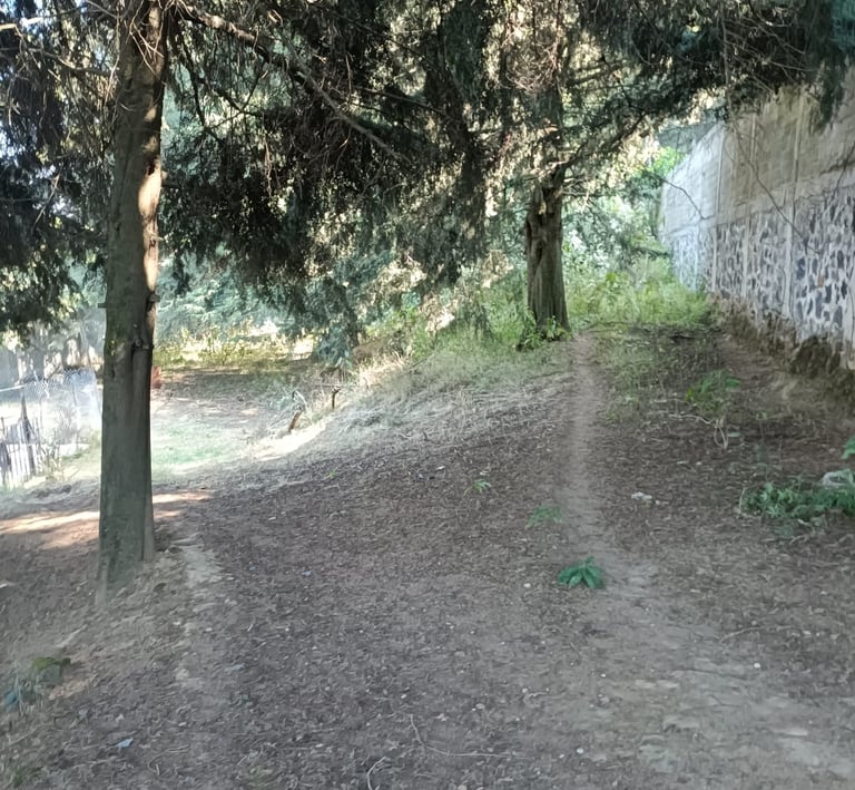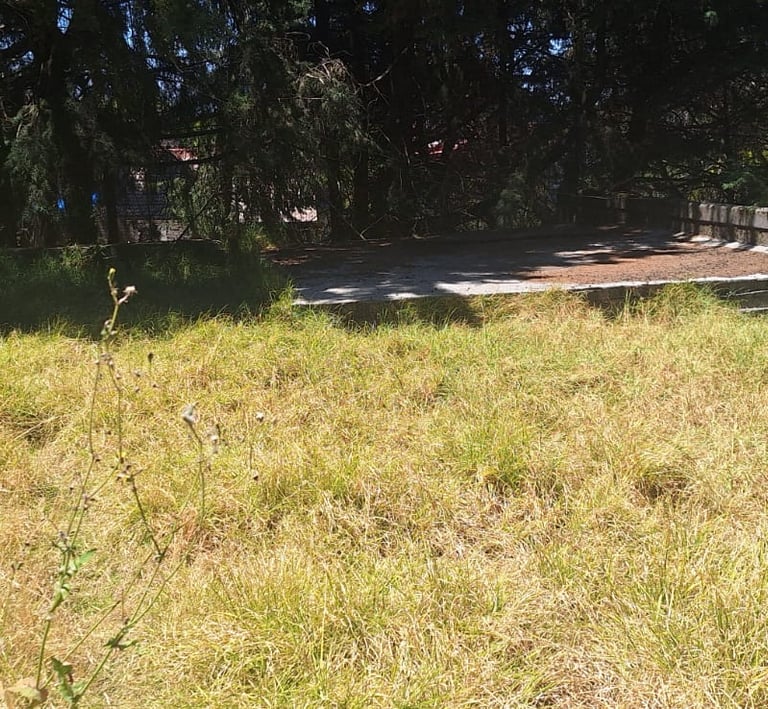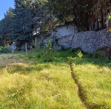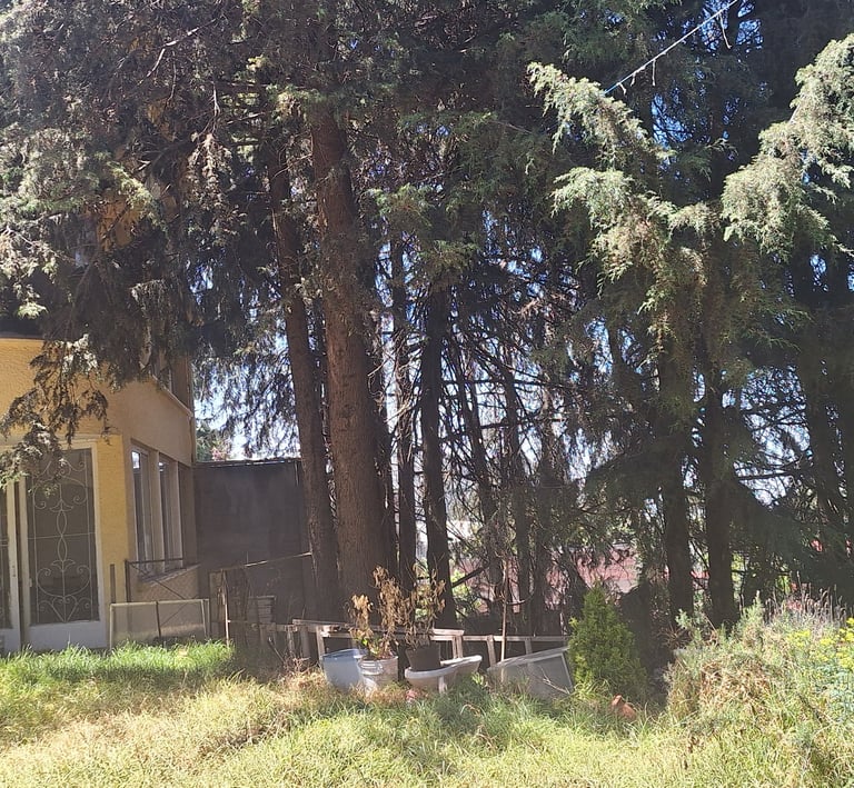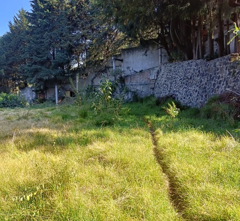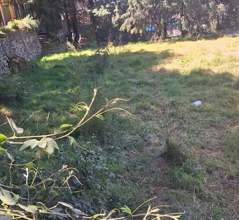 4,033 metros cuadrados de terreno, totalmente bardado y más de 70 árboles.