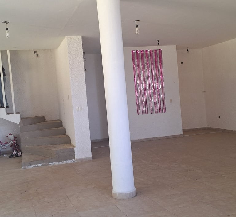En planta baja: Salón de fiestas con área de cocina, bodega, despensa y 8 baños.